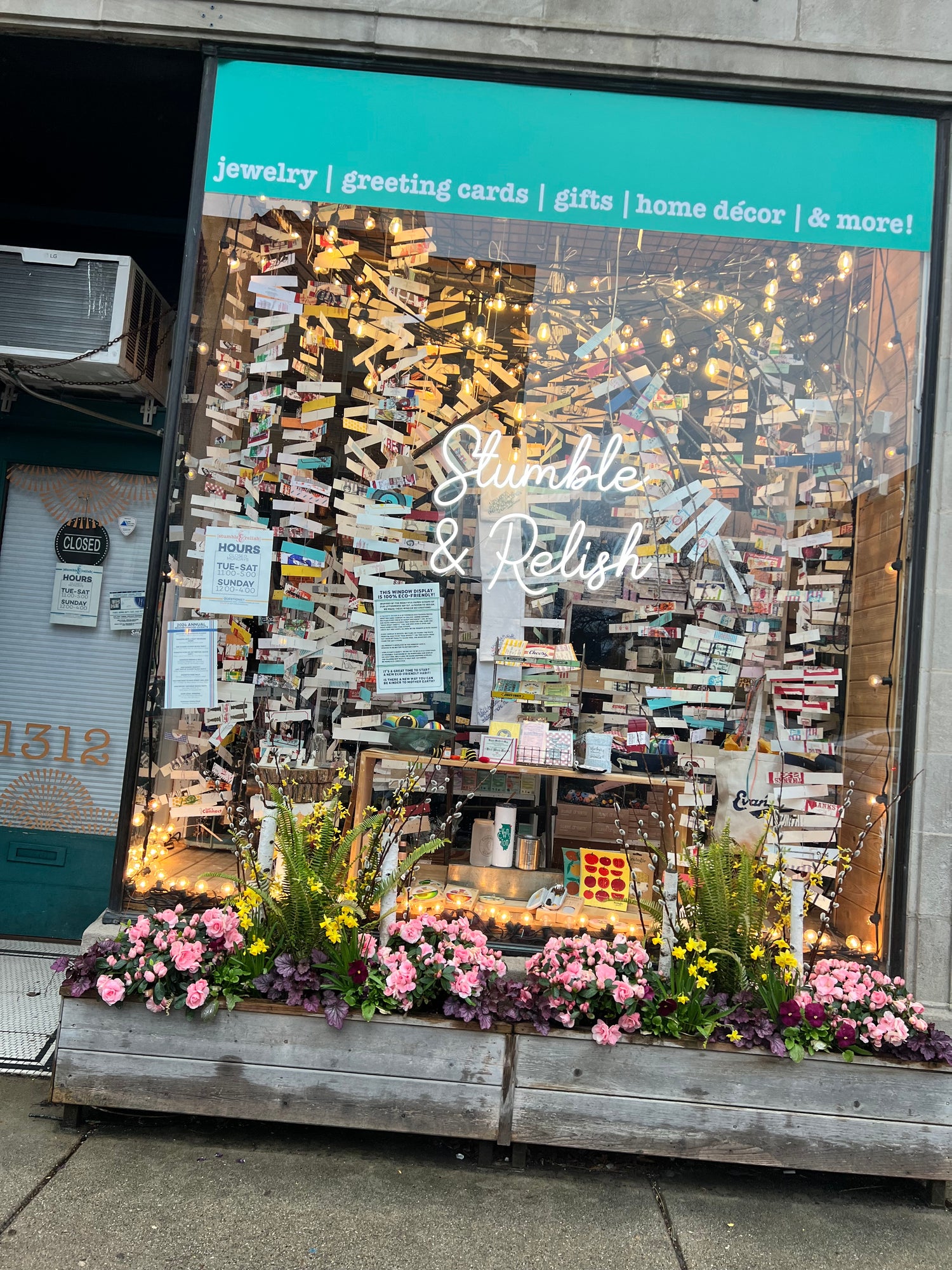 Stumble & Relish is a jewelry & gift shop opened by a mother & daughter team in 2013. Paulette (A.K.A mom) & Jaime (A.K.A. daughter) have dreamed about opening this little shop for years. They love the little things to stumble on and savor…lovely artists, handmade goods, unique finds, vintage accents, home decor, stationery, beautiful design…and they want to share them with you. Sweet things to relish in pure happiness, gifts to give & something to make you smile. Paulette retired from the shop in 2019 but we still keep the same sentiment and work to carry lines she still loves and uses.