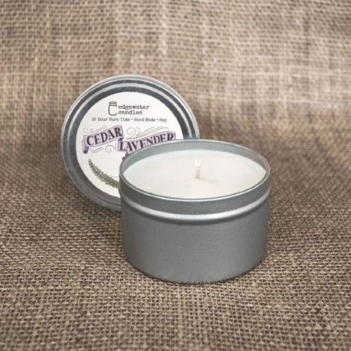 6oz Travel Tins are perfect for smaller spaces or to add to your overnight bag. Travel Tins burn for approximately 35 hours. 3⅛"w x 2"h.