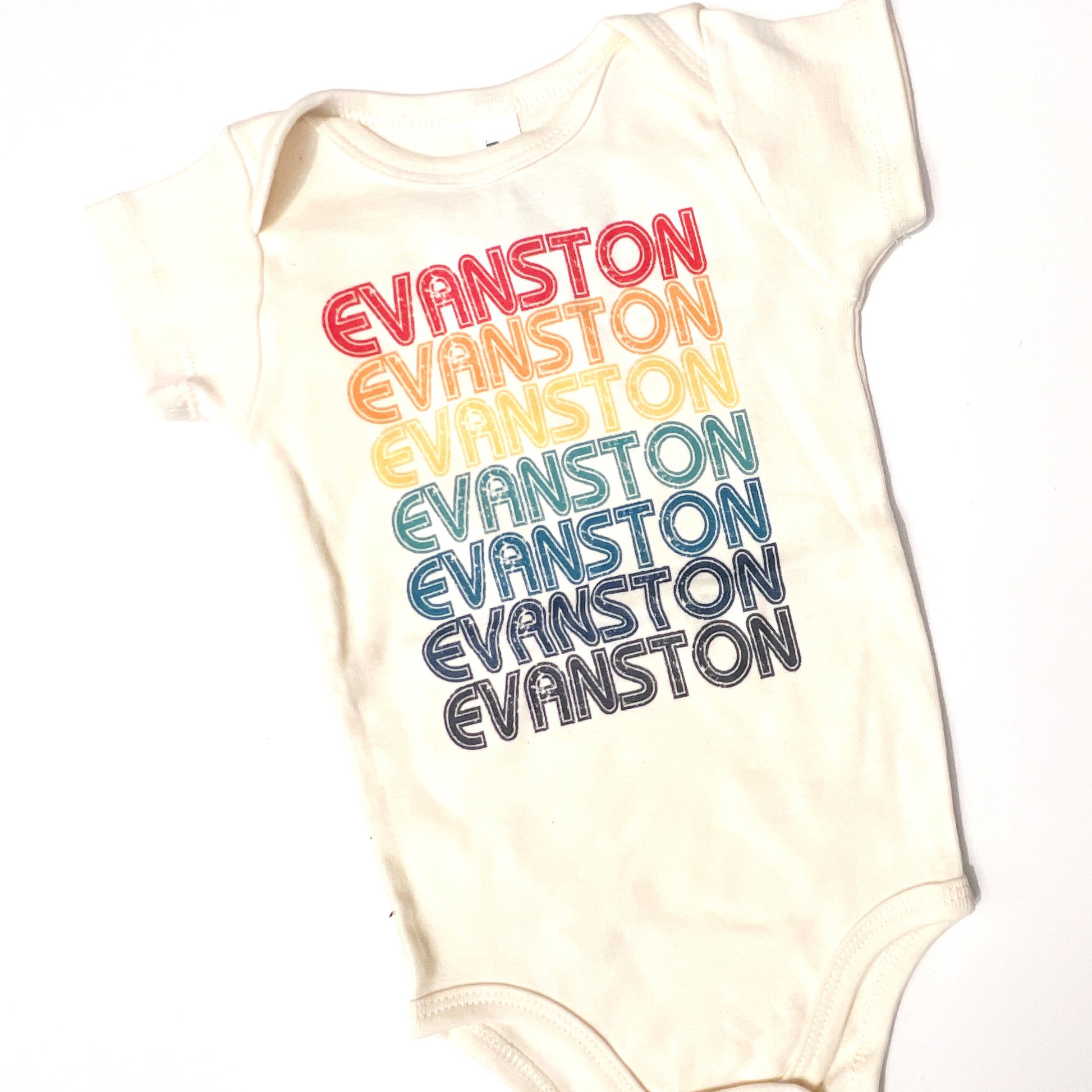 Evanston Rainbow Retro Repeat Onesie: 6-12 Months