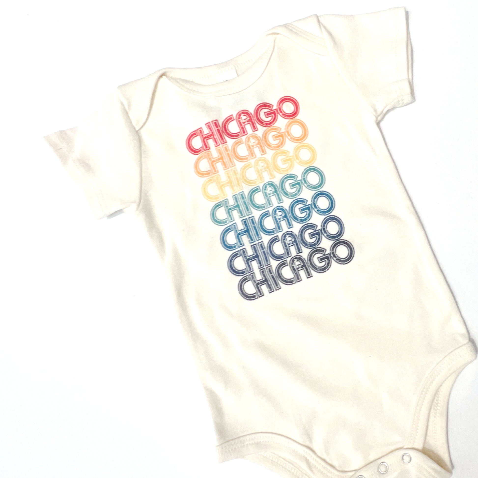 Chicago Rainbow Retro Repeat Onesie: 6 Months
