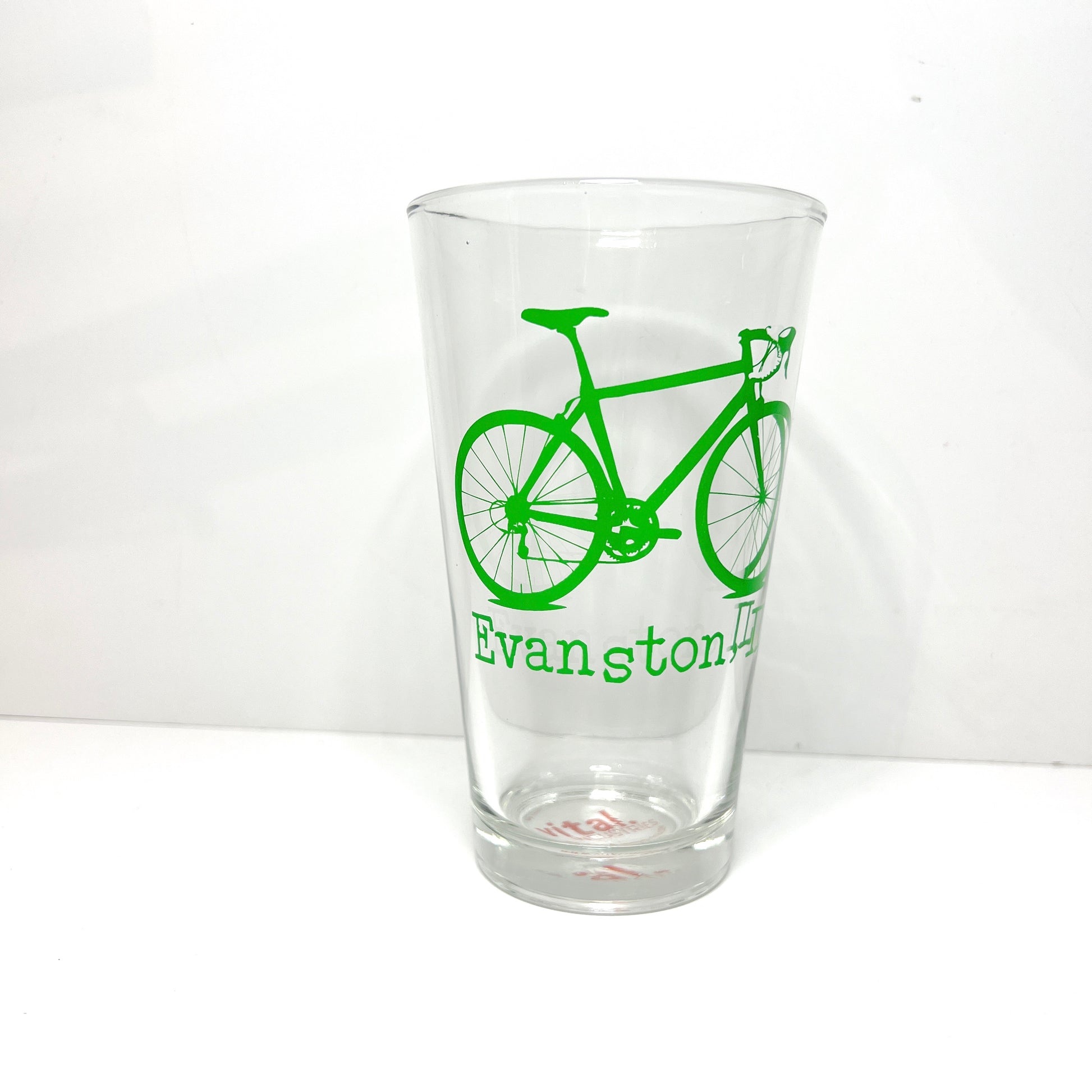 Sip responsibly with this "Aqua Evanston Bicycle" Pint Glass! Featuring an iconic image of a bicycle and a shout-out to Evanston, IL, this USA-made glass is not only stylish, but also dishwasher-safe - perfect for pedaling your way to easy cleanup. Cheers!