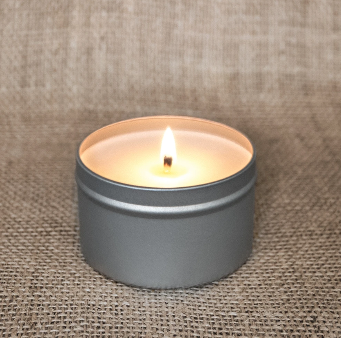 6oz Travel Tins are perfect for smaller spaces or to add to your overnight bag. Travel Tins burn for approximately 35 hours. 3⅛"w x 2"h.