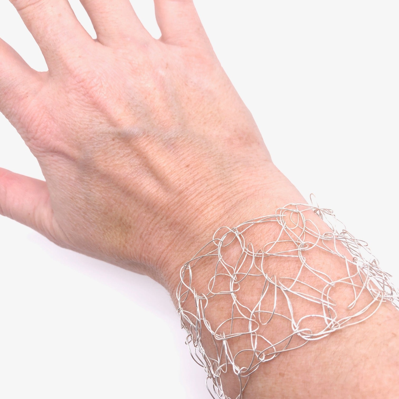 This is a shop favorite! Hand crocheted in Chicago. We've carried these crocheted lovelies since we opened and they are still adored by many. This bracelet is adjustable to fit your wrist (you can carefully push/pull the edges to fit).